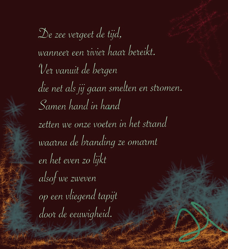 Laat het alwetende onbestemd, het geloof onzeker, geniet van het moment en drink het bittere met het zoete. Om een herinnering te kunnen duiden als een melodie gesneden uit hout varend door het onbekende